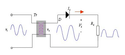 半波整流電路:半波整流就是利用二極管的單向?qū)щ娦阅埽菇?jīng)變壓器出來的電壓Vo只有半個周期可以到達負載,如下: