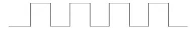 但這種脈沖寬度不是可以無限制的變窄的,脈沖寬度的變化范圍,即調(diào)節(jié)范圍僅是10%—90%。這一特點決定了這種PWM芯片,并不適用于一個從0電壓起調(diào)的所謂連續(xù)可調(diào)的電源。例如一臺500V5A的開關(guān)電源,當(dāng)它輸出達500V5A時,控制脈沖最寬,形如: